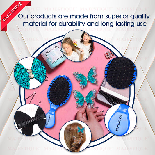 MINI STYLING HAIR BRUSH WITH BUTTERFLY CLIPS (PACK OF 3) Multicolor CMB560