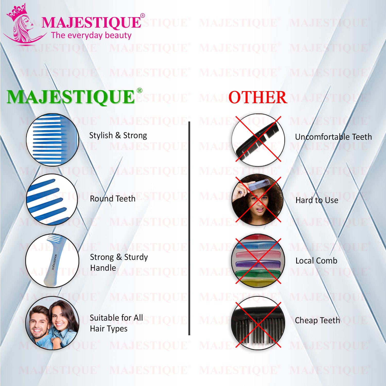 Majestique Compact Styling comb is designed to provide precise trimming and smooth, drag free combing and offers you the control necessary for superior hair care. Handle Comb easily detangles wet hair without pulling or breaking hair. Great for long, thick hair. Detangles long or wet hair. For all hair lengths. Designed for all usages, hair types, hair lines, scalp sensitivities, and of course for all preferences… This comb will work wonders on any head of hair. It has a smooth, flat surface to allow for clean and precise cutting. It comes with comfortable hand-grip and narrow spaced teeth detangle. Anti-skidding and frosting, humanized design. Suit for your dry hair, wet hair or other most situations. Easier for your daily use, no fly-away and frizzy hair experience during your hair styling. Designed in different colors, enough for your daily hair styling needs, with moderate thickness