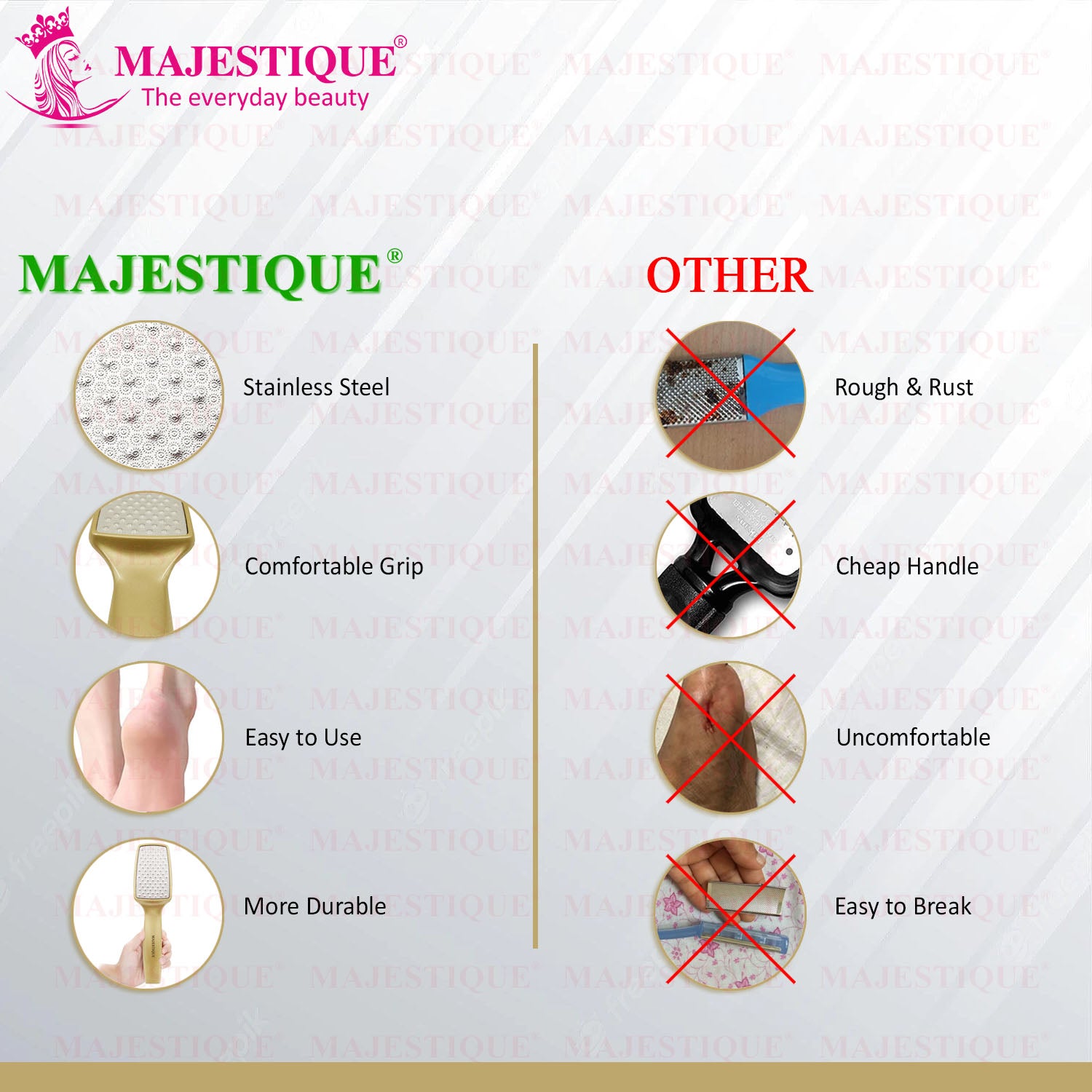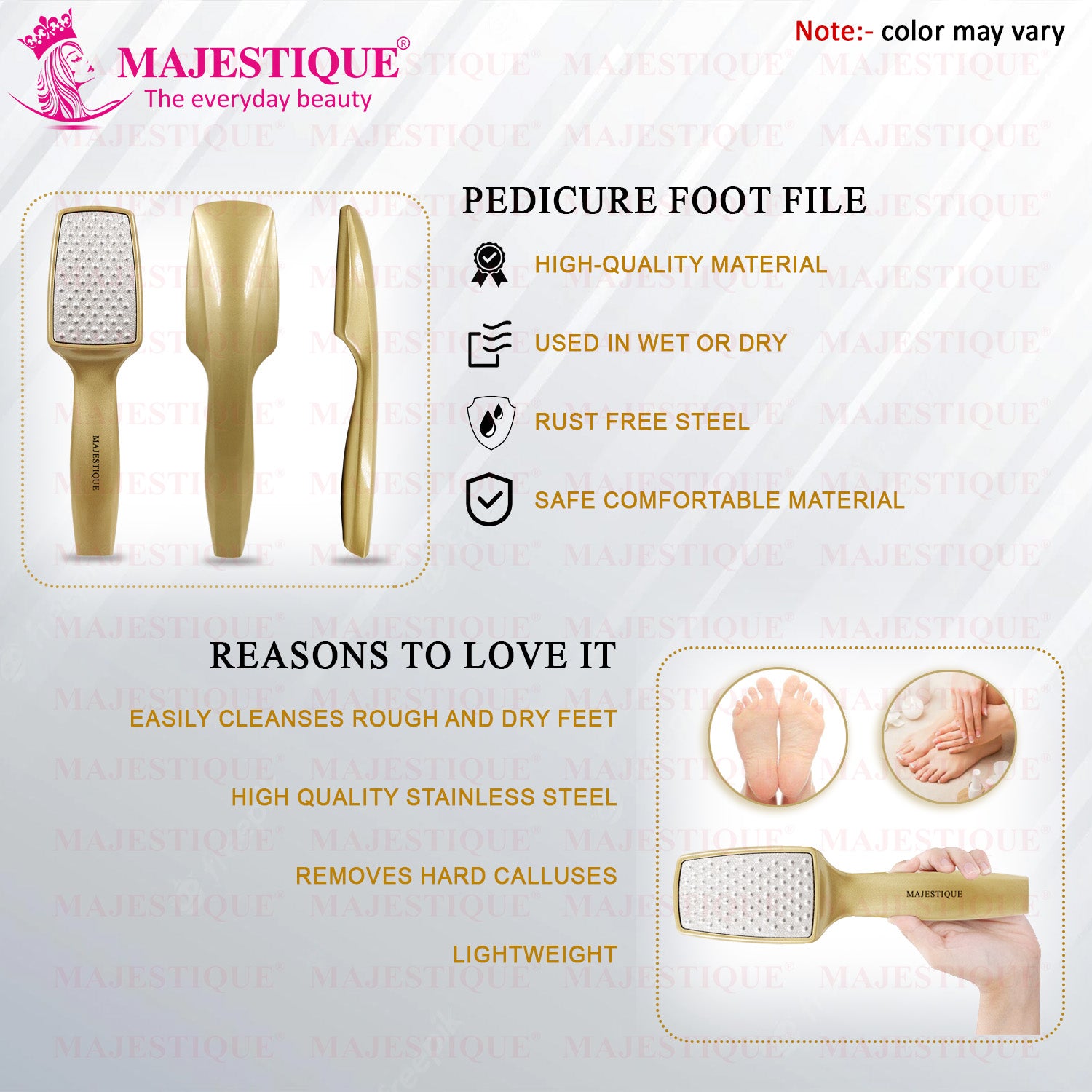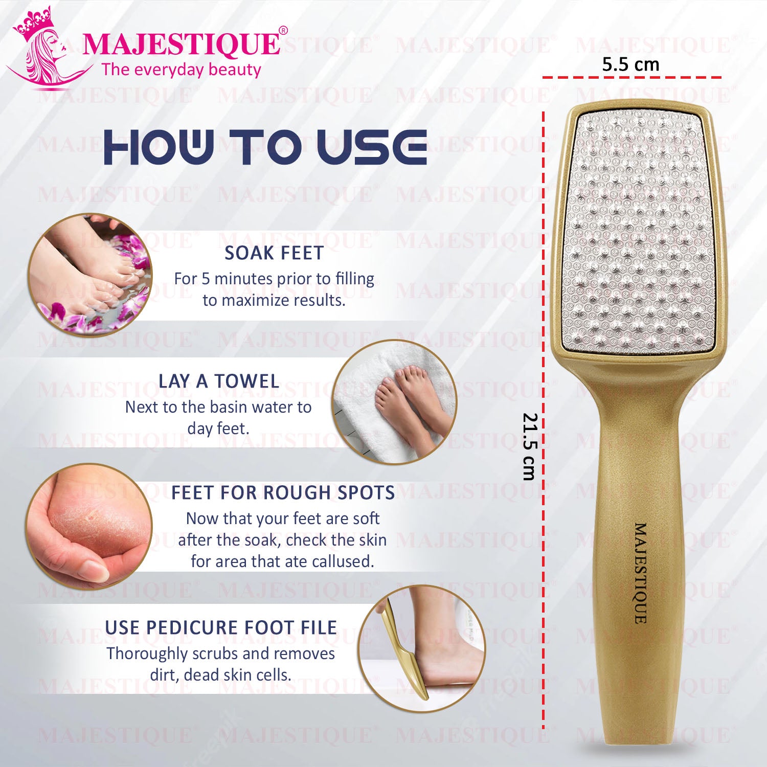 Majestique foot filers are made for coarse, callous, and corns removal on heels and feet. Pedicure products from majestique provide equally good results on both dry and wet foot surfaces that allow the user to work by their own preference and satisfaction. Whether you're using the foot files or the metal foot rasp, their handles make the whole process easy to do. Especially the majestique foot rasp has an ergonomic non-slip handle, which is more convenient for you when using. Majestique foot files are mild to your skin and the Foot File is recommended if your feet are tender. Are you still spending much money on pedicure salon or taking time on the way to the salon. Callus remover is the best choice for you to get a professional foot care pedicure at home.