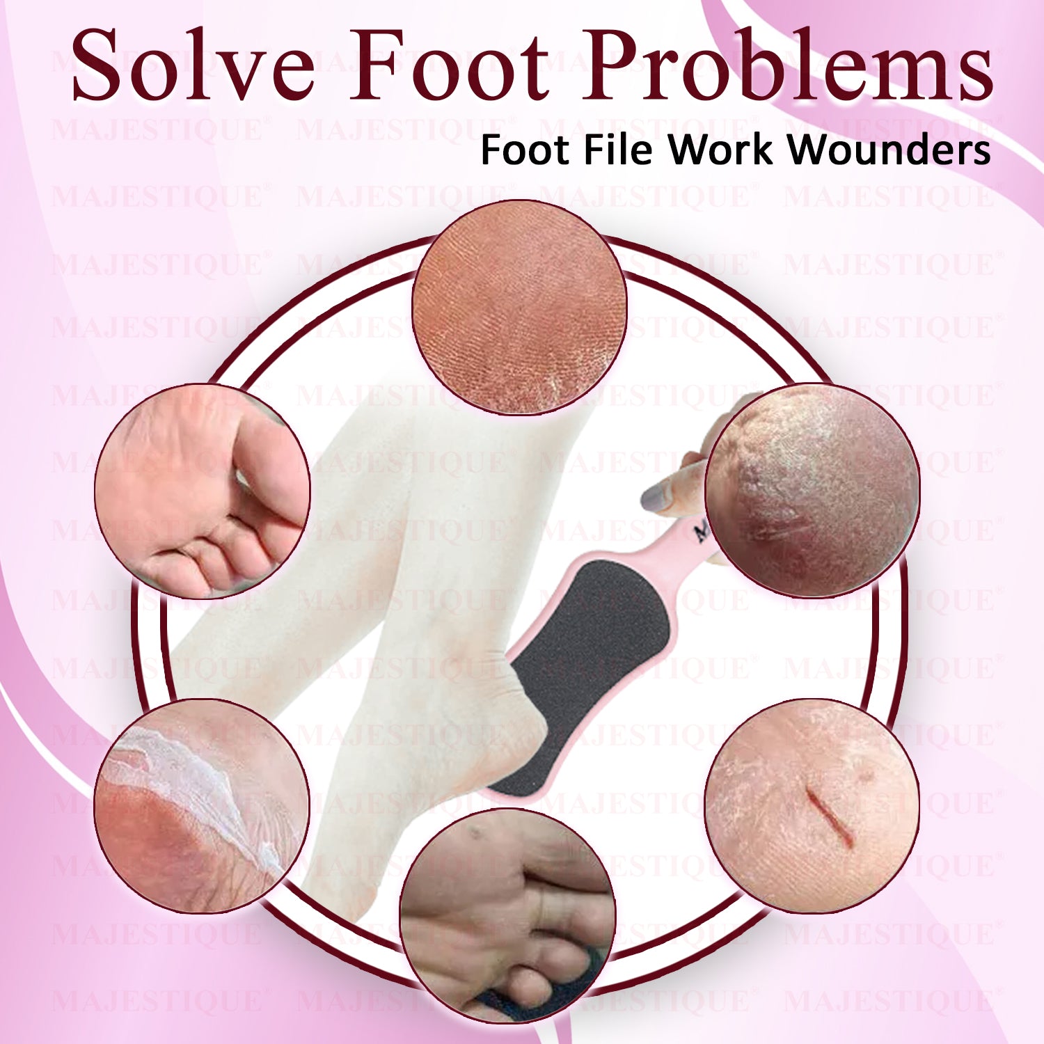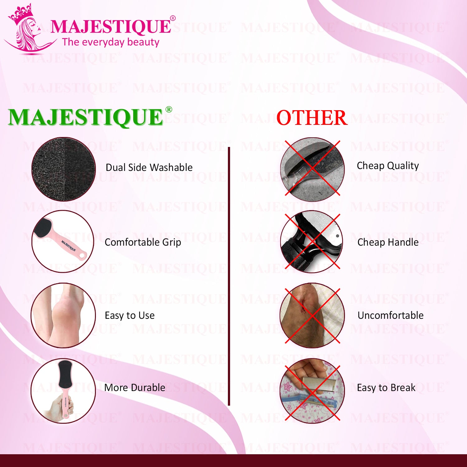 • Ensure your feet are clean and dry before using the Majestique Foot Scrubber.