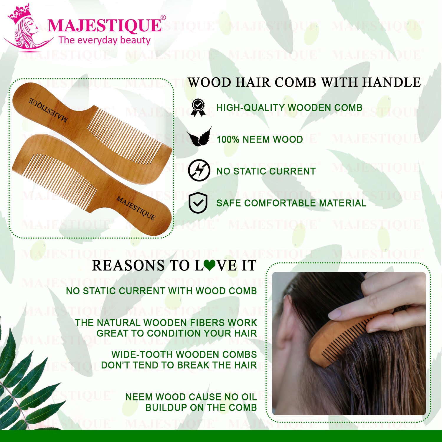 • Take your Majestique Wooden Tooth Comb and start at the tips of your hair, combing up toward the roots in gentle strokes.